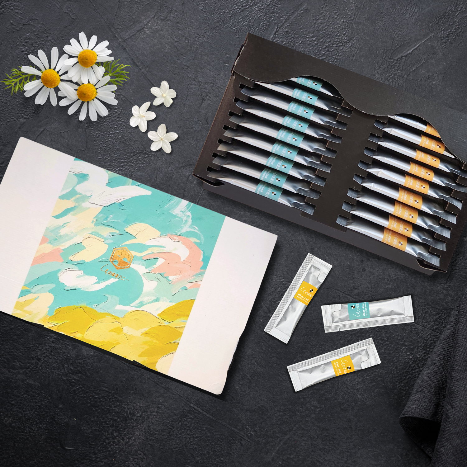 国産の花香る季節の生ハチミツをそのままスティックにしました。希少なニホンミツバチの百花蜜など、そのままハニーの限定品多数。